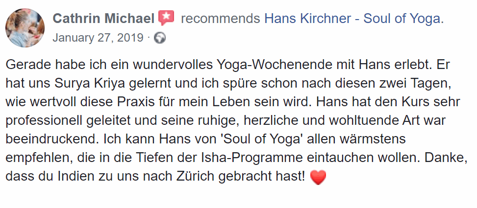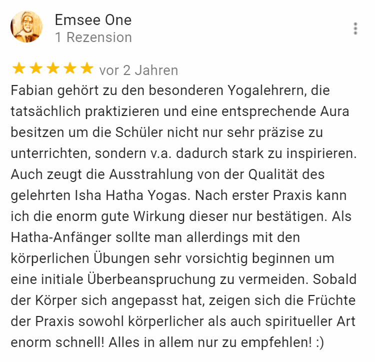 Jetzt könnte ich versuchen Dich davon zu überzeugen, dass meine Yogakurse diese reinste Form des Yoga vermitteln. Ich könnte Dir erzählen, dass ich drei Jahre in einem Yogacenter in Südindien gelebt und intensiv Yoga gelernt habe. Dass ich über 5 Monate in einer der traditionsreichsten Yoga-Ausbildungsschulen eine Ausbildung zum Yogalehrer mitgemacht habe. Ich könnte Dir erzählen, dass jedes Jahr Tausende von Menschen aus Europa und Nordamerika eine Reise um die halbe Welt in Kauf nehmen um diese reine Form des Yoga im Isha Yoga Center in Südindien zu lernen und dass Du es jetzt und hier direkt in Konstanz lernen kannst. Aber dafür müsste ich von Dir verlangen, dass Du mir einfach so blind glaubst. Und warum solltest Du? Du kennst mich vielleicht noch gar nicht.