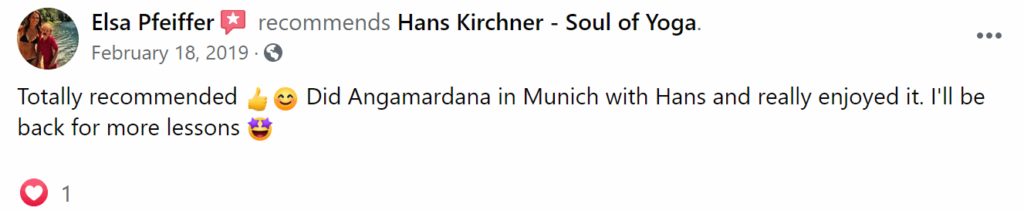 Ja. Innerhalb von einem Tag lernst Du die Übung, so dass Du danach in der Lage bist sie zuhause selbständig weiter zu praktizieren. Ich bin davon überzeugt, dass nur so Yoga ein wirklich integrativer Bestandteil des eigenen Alltags werden kann. Dein Vorteil ist, dass Du nicht immer in ein Yogastudio gehen musst und dadurch zeitlich und örtlich gebunden bist.
