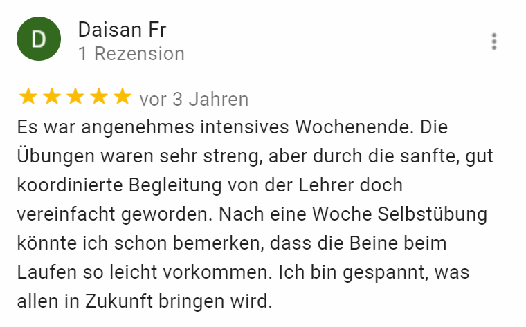 Deshalb mache ich Dir stattdessen ein Angebot. Ein Angebot, dass zu gut klingt um wahr zu sein und vielleicht die Frage bei Dir aufwirft ob ich in meiner Zeit in der Finanzwelt denn gar nichts gelernt habe. Das ist mein Angebot: Überzeug Dich selbst! Komm in einen unserer Yoga Wochenend-Workshops und mach dir selbst ein Bild. Lies nicht darüber, ERFAHRE diese reine Form des Yoga! Wenn du nach dem Kurs nicht zufrieden bist, gib mir innerhalb von 30 Tagen Bescheid und ich buch Dir Deinen Kursbeitrag zurück! Ohne Fragen, ohne wenn und aber!